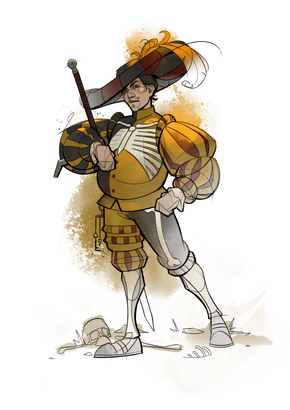 The look: Fantasy paladins and clerics. Over-dramatic pauldrons, gorgets, tabards, and belt pennants showing Order allegiance. Dark colours with metallic accents. Dark smudged makeup around the eyes with contrasting metallic paints. Glowstone woven into clothing for light.