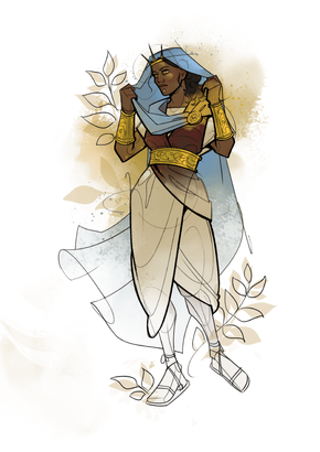 The look: Ancient Greek-inspired. Layered tunics, chitons, togas in rich jewel tones through to muted pastels. Gold and metallic jewellery, headdresses, and decorative belts. Muscleplate armour evoking the Kolossi warriors is prized above all.