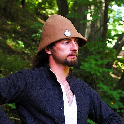 Hats are commonly worn in Avereaux to keep off the sun and rain - straw hats in particular, but also wide-brimmed felt hats. Other styles of medieval hats are also appropriate; bycockets, round hats, bag hats and other simple styles of wool hats, all the better to show off souvenirs of past adventures for all to see.