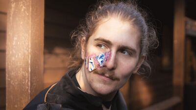 OC Note: any "inorganic" items bonded to the skin with spirit gum, prosaid or other skin-safe adhesives must not have sharp edges that could cause injuries to the person wearing them. Malleable, skin-safe makeup elements are best.