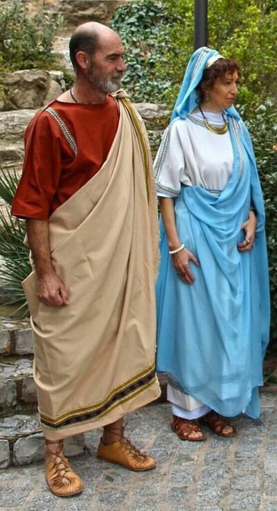 - An overlayer tunic or dress, chiton or toga.