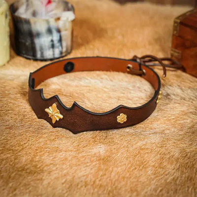 Simple circlets and metallic bands are also popular, as well as cloth or leather headbands, usually with metallic decoration of some kind; leather tooling or paint, patterned fabric trims and braided cords.