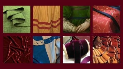 - Gambesons and arming jack, especially in bright colours and with decorative sleeves.