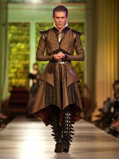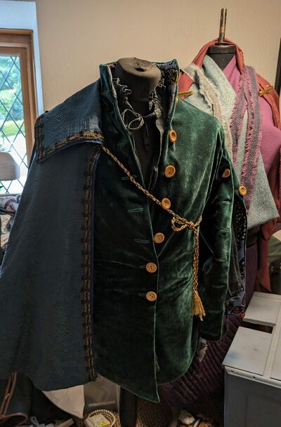 - A tailored mid layer - a doublet or bodice that creates the silhouette, with a natural waistline, buckled, laced or buttoned at the front.