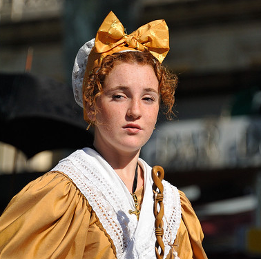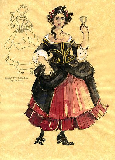 - A big, wide-brimmed hat, with a lot of space for decoration with feathers, flowers, ribbons and sashes, or some sort of indication of the trade of the wearer.