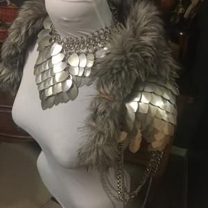 - “Orc” style costuming, without the orc masks. Layered organic materials, pieces of antler, feathers, fur, lamellar, chainmail or scalemail used in scraps, War Skirts and mantles.