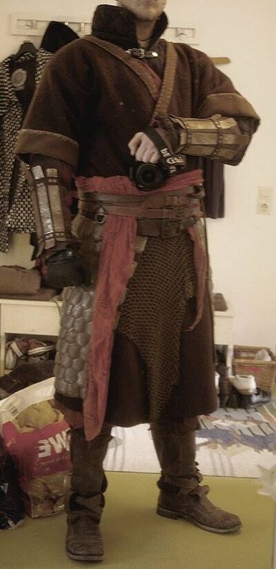 The Urdrevan prefer clothing that is well-fitted and gives them some flair – personal reputation is important, and some of the finest tailors in the world travel with Urdrevan convoys. Mongolian style wrap-coats and doublets, and jerkins with a more historical European flavour work well, and elements like chunky ‘hero belts’ or layered ‘war skirts’ often used in orc costuming from other larps can pull together a Urdrevan outfit.