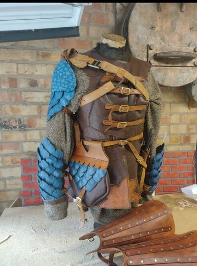 Armour amongst the Urdrevan people is piecemeal, usually collected over time and homemade. A wide variety of fantasy styles are appropriate, especially ones that use polyurethane and stamped leather or faux-leather to mimic the hides of extinct animals that are among those megafauna that roam the lands.