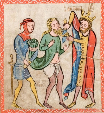 The most common headwear is the hood due to its use in covering the neck as well; usually dagged with patterns cut into the hem.